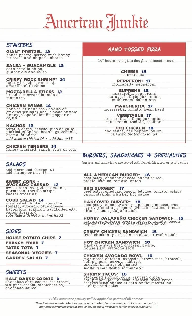 *These items are served cooked-to-order or undercooked. Consuming undercooked meats or seafood may increase your risk of foodborne illness, especially if you have certain medical conditions.